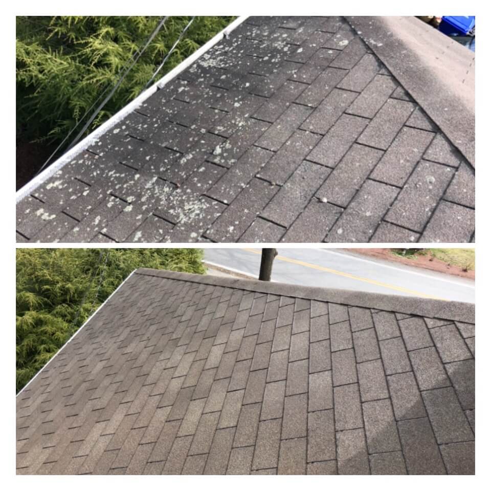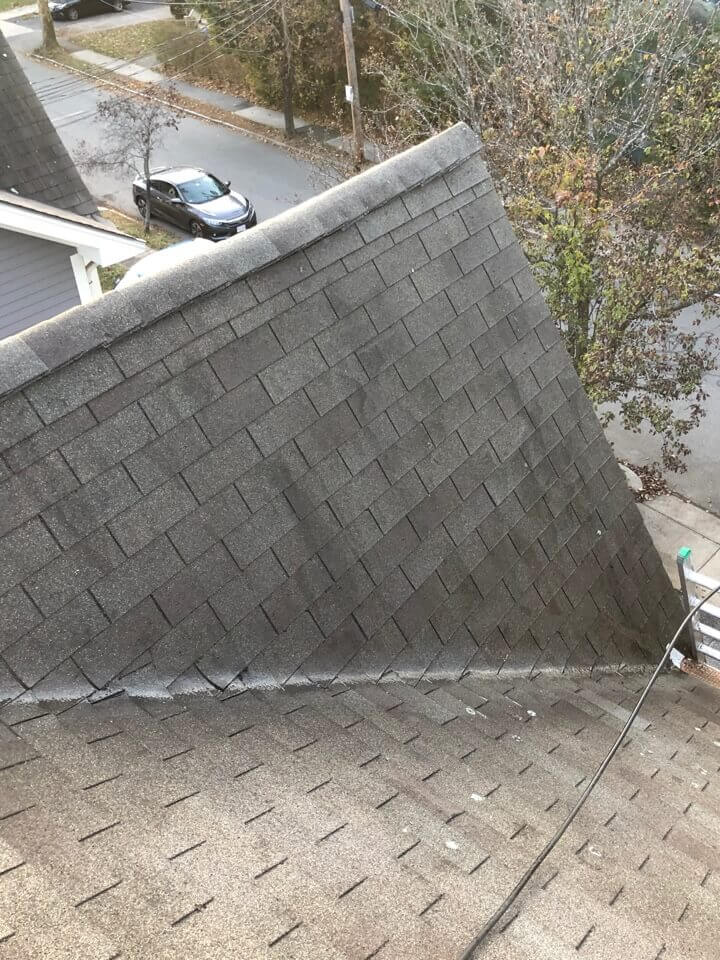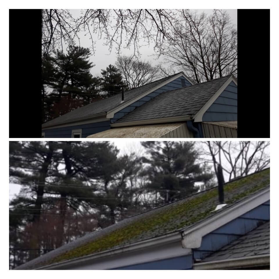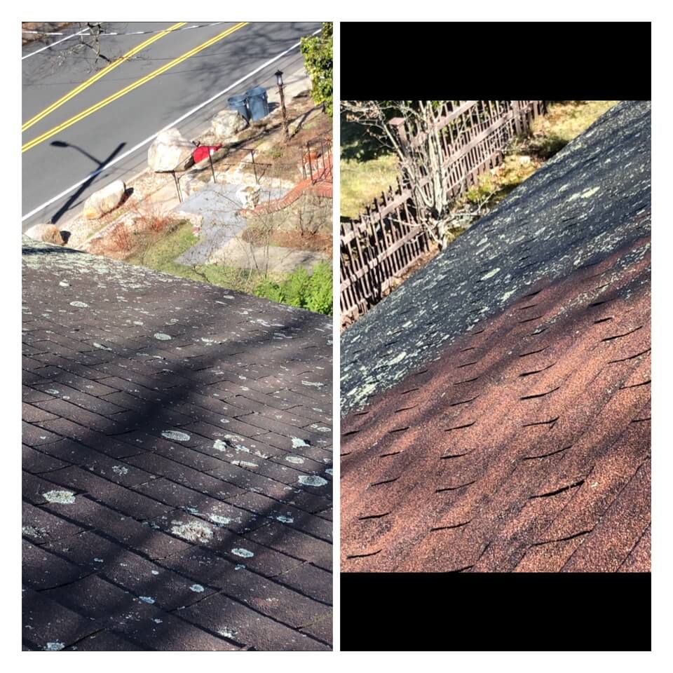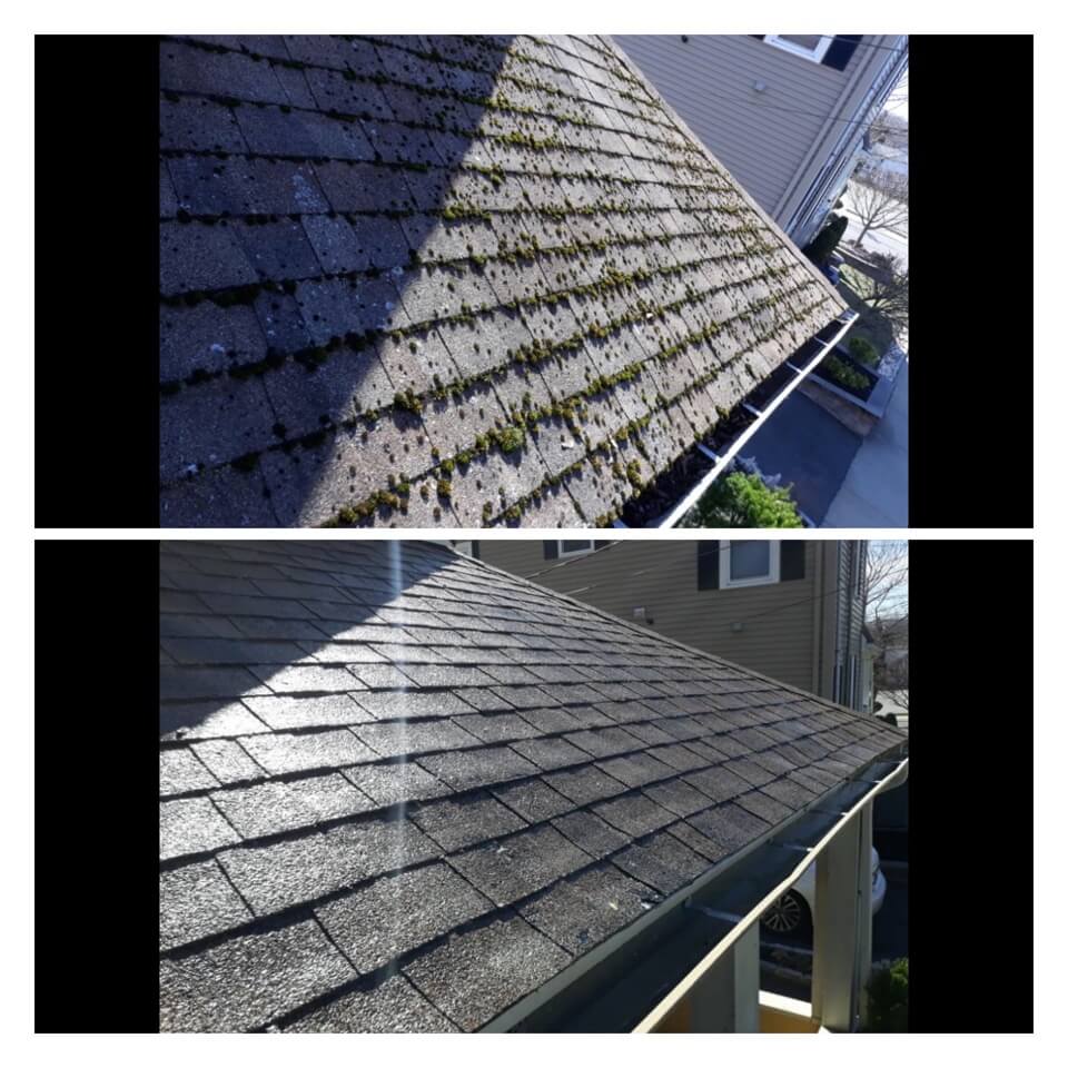 HiCleaners is the most experienced company in Winchester, MA that deals with roof washing and roof soft washing. All of our employees are trained to recognize precise solution mixing ratios to provide you with the safest and most effective soft washing service. Roofs are a commonly neglected part of a house due to the fact that most people don’t have ladders to access it, so it is very easy to just leave it alone and forget about problems that may start to arise. Just like many home owners, discoloration and small bits of moss on a roof can be overlooked because of the misconception that it is just aesthetic. However, it isn’t just aesthetic, the moss slowly lifts the granules off the shingles which in turn shorten the life of the shingle. The moss also spreads, just like any bacteria if it is left alone for too long, it can quickly become a problem that spirals out of control. Call HiCleaners for a free quote, we only use the most advanced eco-friendly solutions and equipment to make sure the job is done right, for the safety of the employees, your plants, grass, pets, and children.